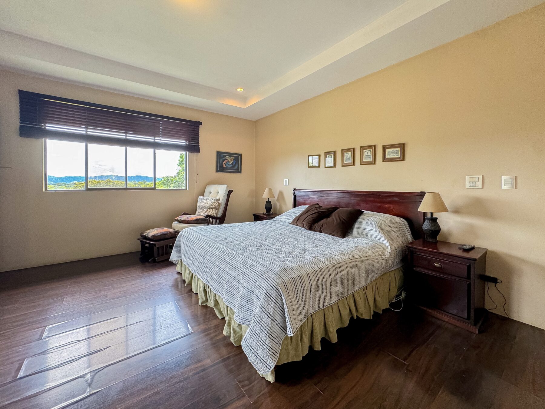 Una escalera te lleva al segundo piso, donde encontrarás una acogedora sala de TV, tres dormitorios secundarios y el sereno dormitorio principal. Los dormitorios secundarios comparten dos baños completos independientes. Cada habitación ofrece impresionantes vistas de las montañas circundantes, permitiendo que todos los miembros de la familia se conecten con la naturaleza desde la comodidad de su espacio personal. La sala de TV se abre a un encantador balcón cubierto, ideal para que los miembros de la familia se reúnan o disfruten del aire fresco y las vistas impresionantes.