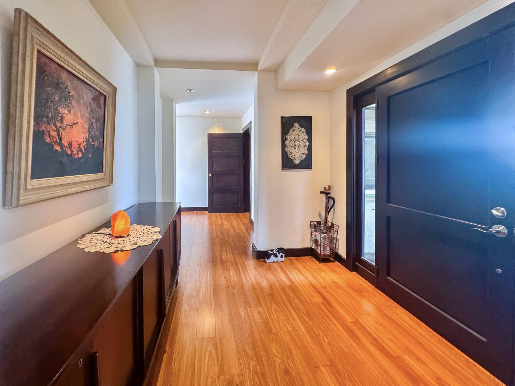 A hallway leads to 3 bedrooms, and an office. All bedrooms boast a walk-in closet and an en-suite bathroom.