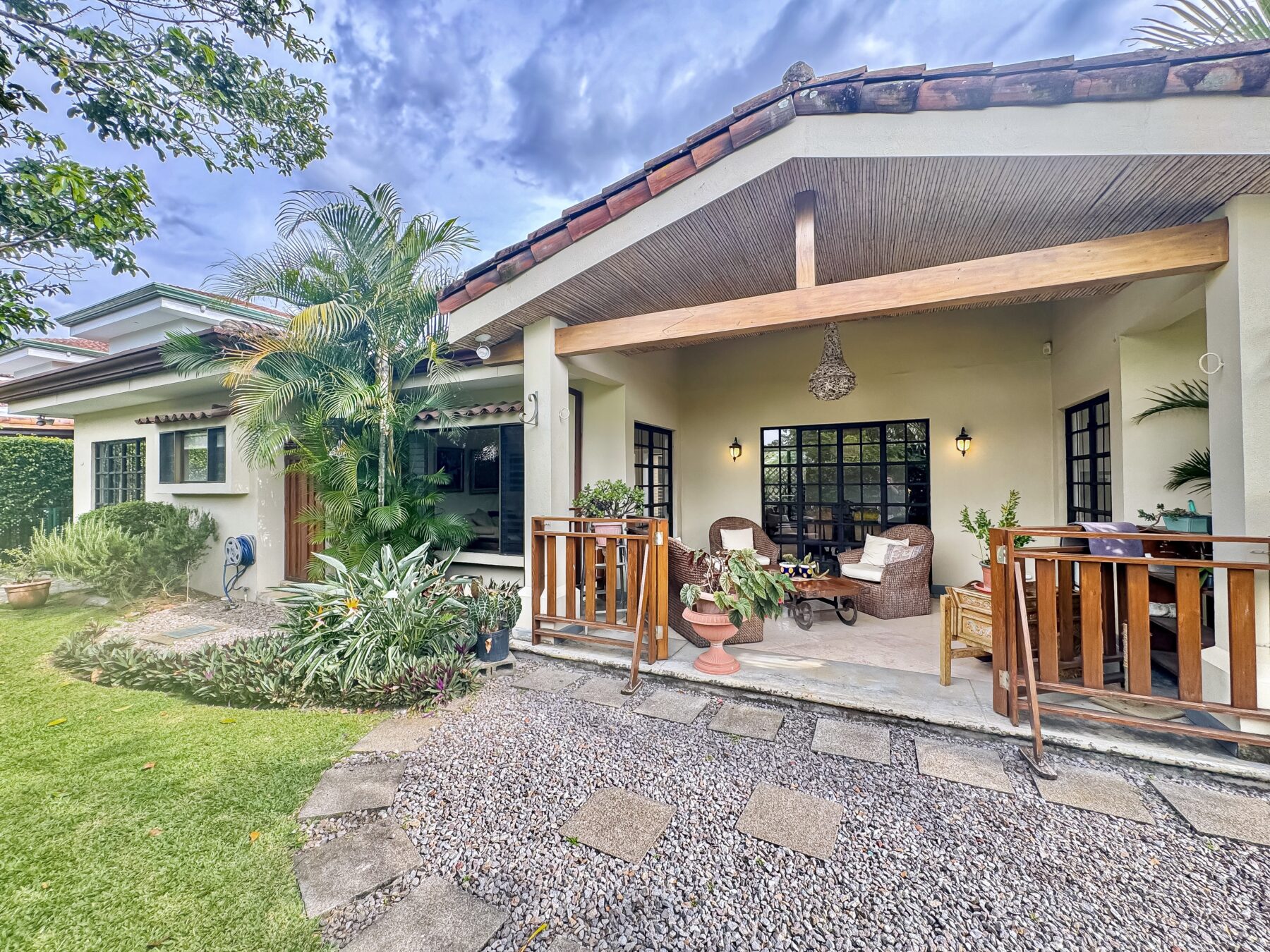 Homes Costa Rica is excited to offer Casa Palm one-level home for sale in Santa Ana Costa Rica. Casa Palm is a one level Mediterranean design home with contemporary & classic design features, nestled in an exclusive gated community of 23 tailored-made, detached, single family homes in Piedades, Santa Ana Real Estate This home offers privacy, comfort, and quick access to Route 27.