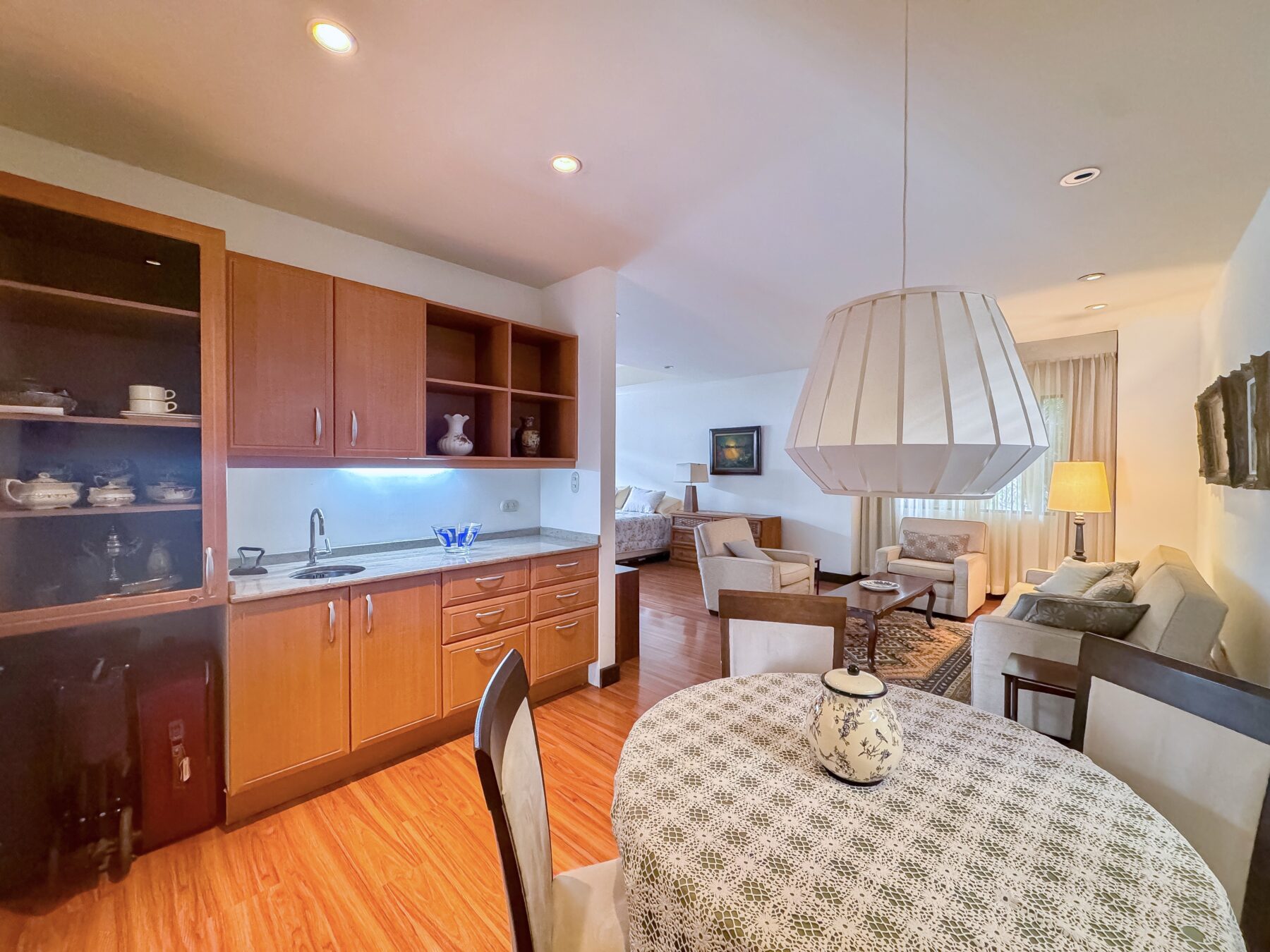 A cozy sitting area with a wet bar