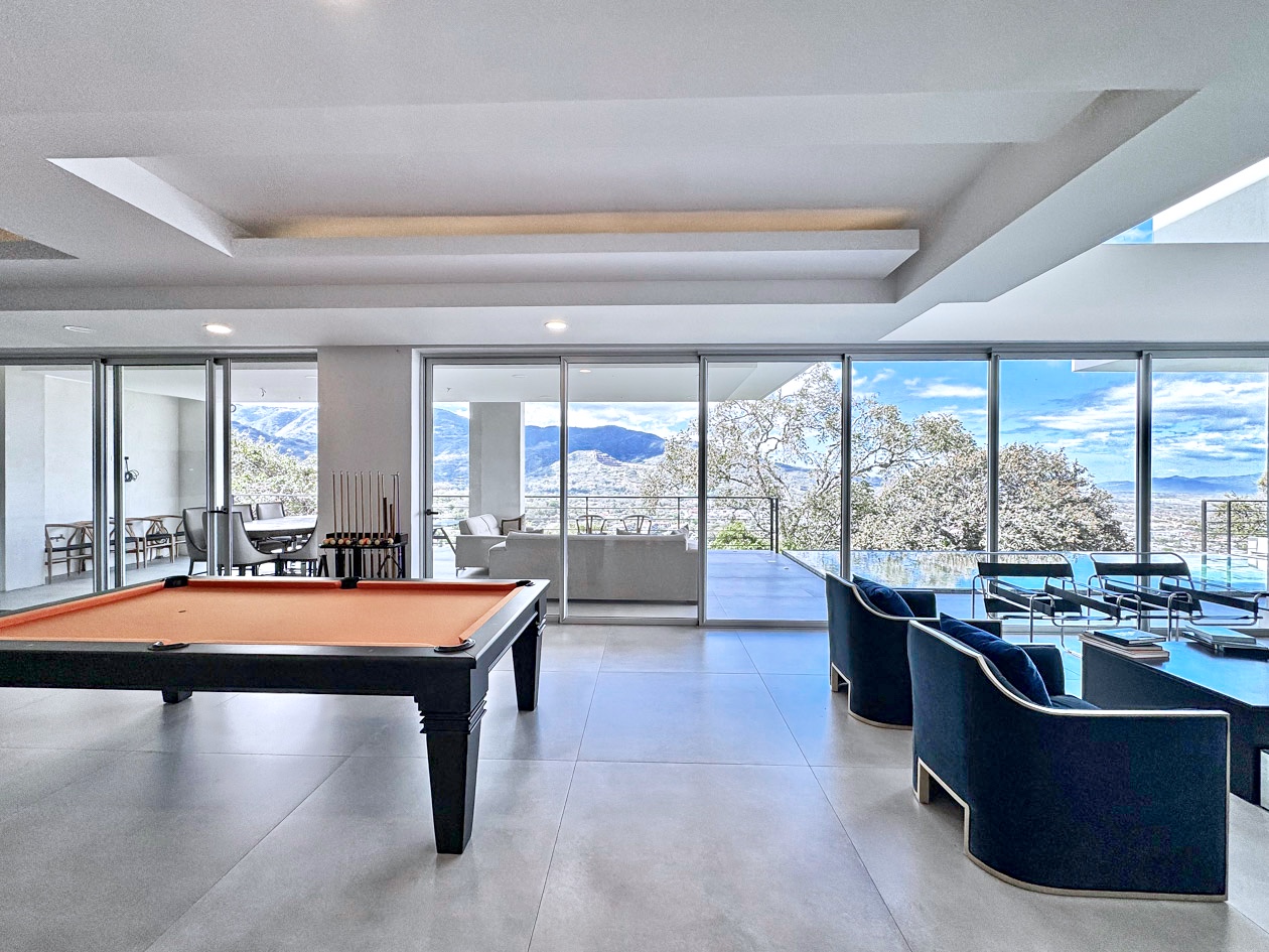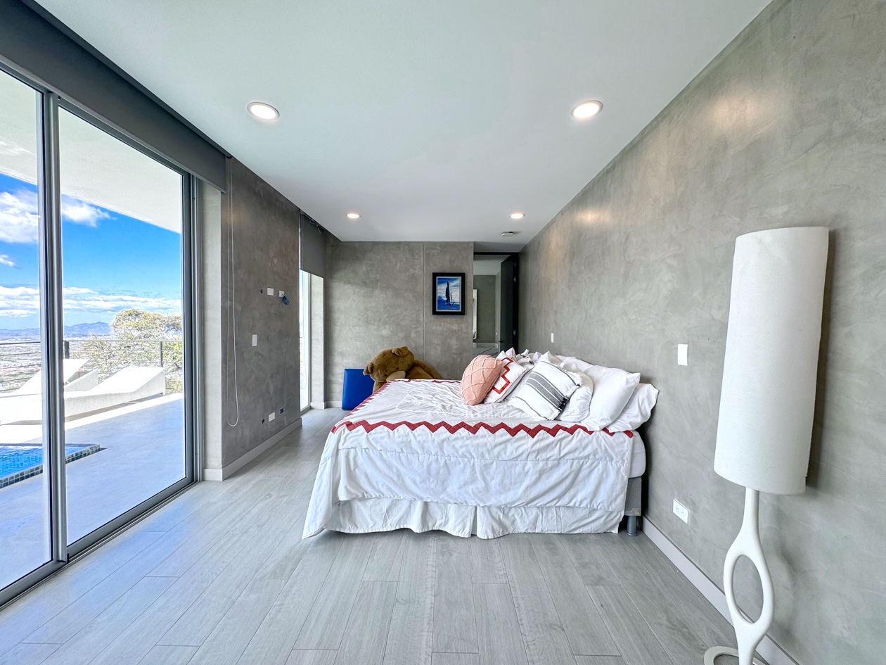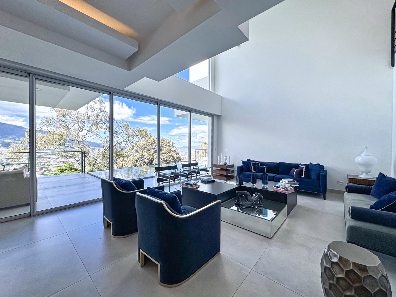 Perched in the hills of Guachipelín, Escazú, Cerro Real 777 Escazu luxury home for sale is a contemporary sanctuary where architecture, nature, and light exist in perfect harmony. From the moment you arrive, a sense of calm takes over—fresh mountain breezes move through the residence, birdsong echoes from surrounding trees, and sweeping views unfold across the Central Valley and distant mountain ranges.