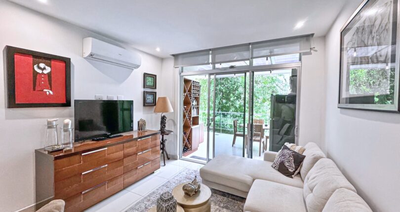 Homes Costa Rica offering Condo Riverpark for sale in Santa Ana Costa Rica. This stunning condo is a corner unit located on the first level boasting a large terrace and beautiful views of the forrest, river and distant mountains. Walking distance to restaurants, cafes and shopping.